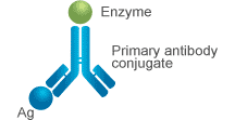在直接 ELISA 中,僅使用酶標(biāo)記的一抗,這意味著不需要二抗。酶標(biāo)記的一抗“直接”與固定在板(固體表面)上的靶標(biāo)(抗原)結(jié)合。接下來,與一抗連接的酶與其底物反應(yīng),產(chǎn)生可測量的可見信號。通過這種方式,檢測到感興趣的抗原。