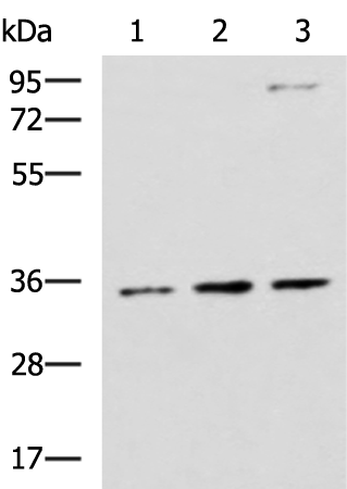 HepG2, A431 and Raji cell lysates |