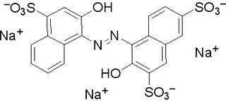 其他英文名稱(chēng) : 1-(2-Hydroxy-4-sulfo-1-naphthylazo)-2-naphthol-3,6-disulfonic acid trisodium salt;3-Hydroxy-4-(2-hydroxy-4-sulfo-1-naphthylazo)naphthalene-2,7-disulfonic acid trisodium salt