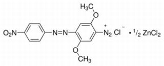其他英文名稱 : Fast Black K Salt hemi(zinc chloride) salt;Azoic Diazo No. 38;2,5-Dimethoxy-4-(4-nitrophenylazo)benzenediazonium chloride zinc double salt;4-Amino-2,5-dimethoxy-4′-nitroazobenzene diazotated zinc double salt